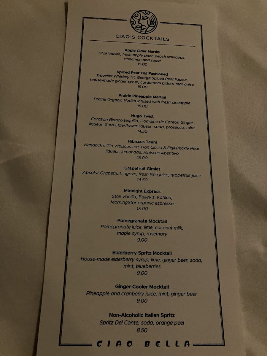 Ciao Bella Menu